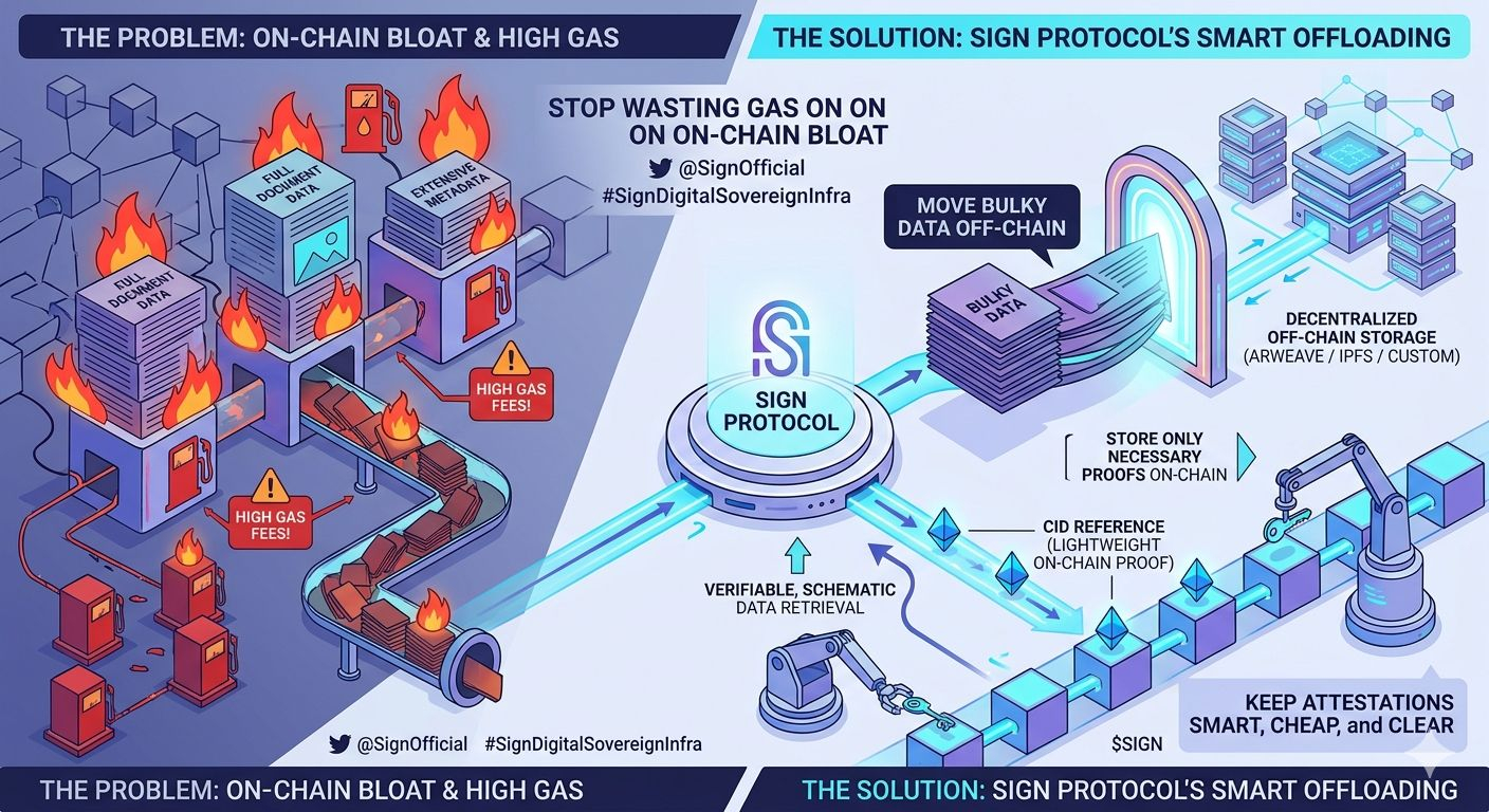 Berikut adalah pendalaman tentang bagaimana memindahkan data berat menyelesaikan masalah ini, dan mengapa infrastruktur Protokol Tanda memimpin dalam membuat attestasi on-chain dapat diskalakan, terverifikasi, dan secara ekonomi layak.