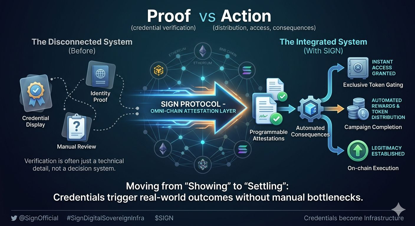 Sebagai protokol attestasi omni-chain, SIGN bukan hanya tentang menciptakan jenis klaim digital baru. Ini tentang mengurangi jarak antara bukti kriptografi dan eksekusi nyata.