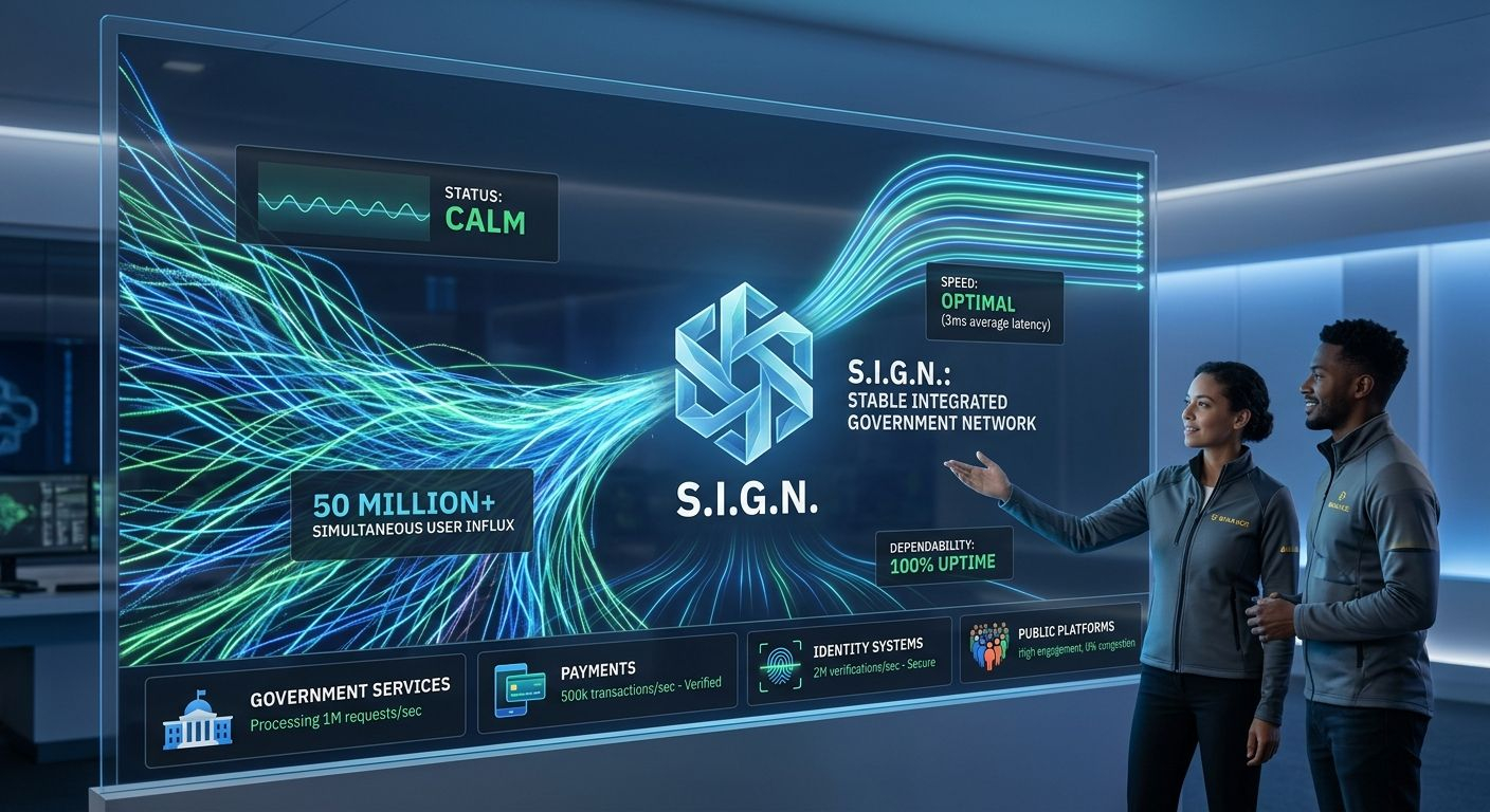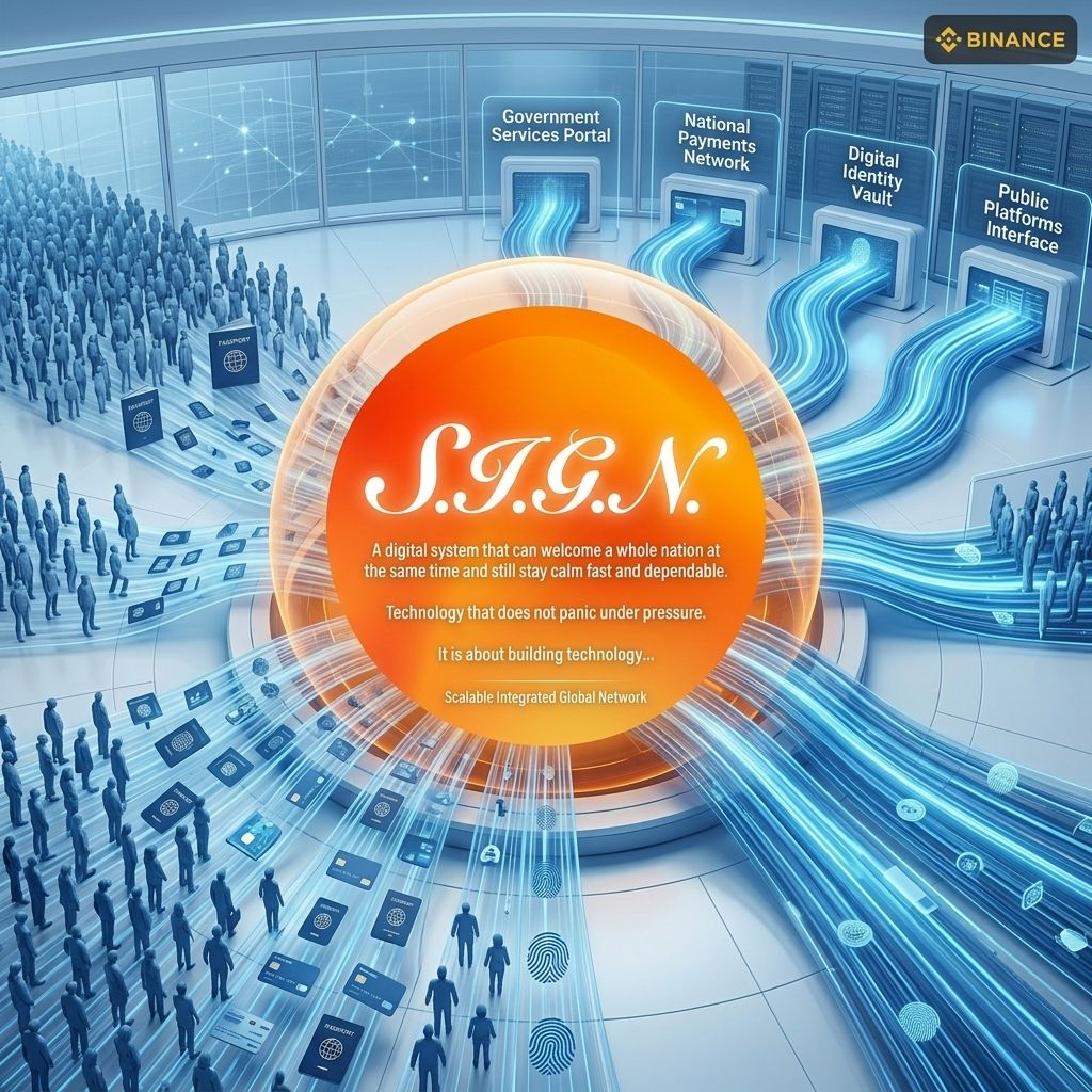 Picture a digital system that can welcome a whole nation at the same time and still stay calm fast and dependable. That is the kind of idea behind S.I.G.N. It is about building technology that does not panic under pressure. Even when millions of people jump in at the same time it just keeps running smoothly without slowing down or falling apart. That matters for government services payments identity systems public platforms and anything else that must work for everyone at the same time.
