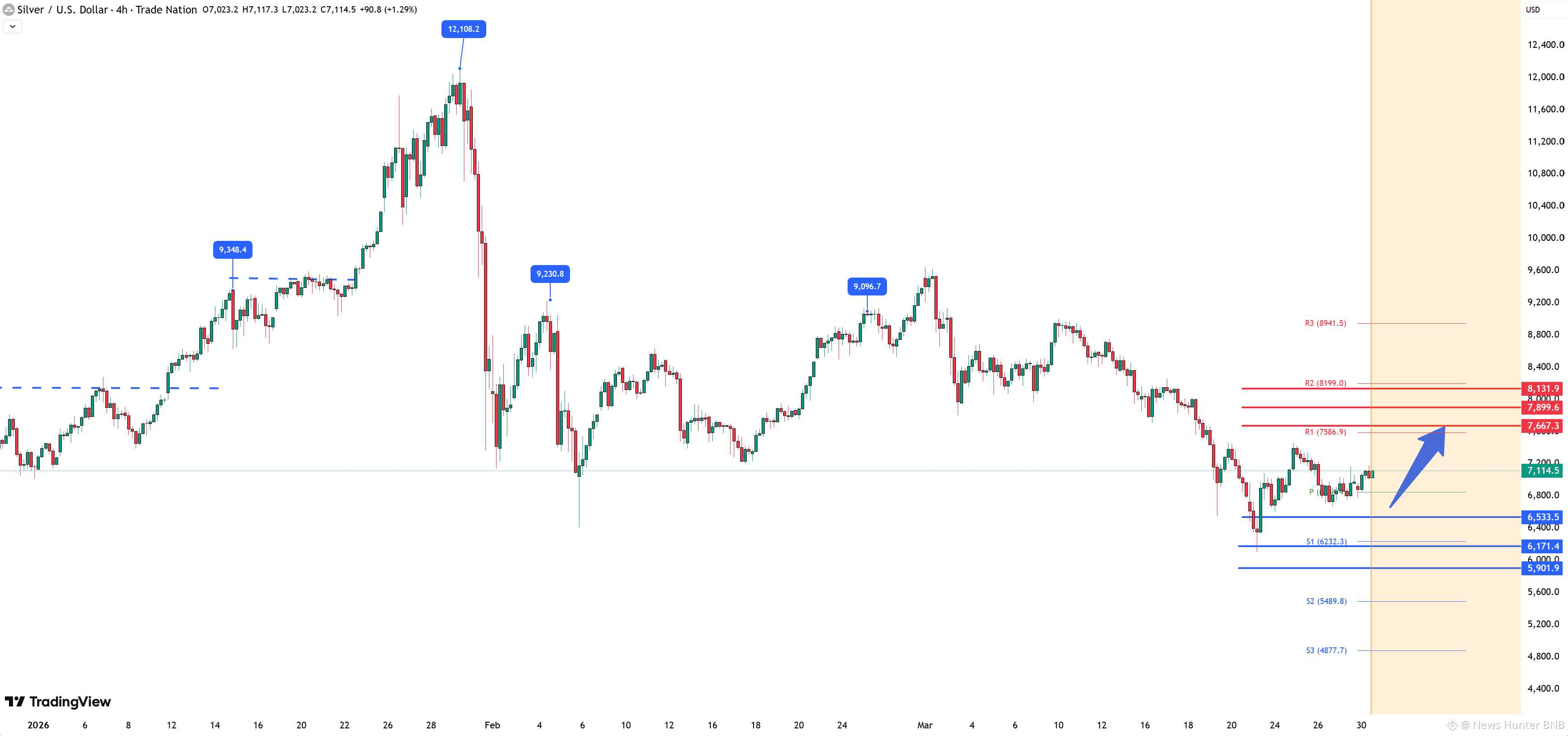 تظل النظرة المحايدة سليمة بينما تتداول الفضة حول المستوى المحوري 6533. قد يؤدي الكسر المستدام تحت أو فوق هذا المستوى إلى تغيير الزخم.