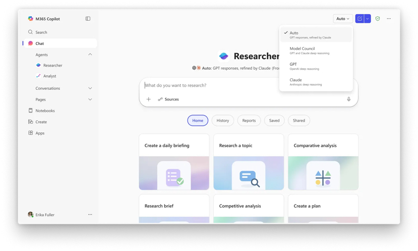 Présentation de Critique, un nouveau système de recherche approfondie multi-modèles dans M365 Copilot.