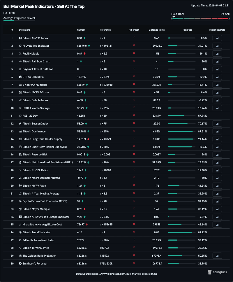 Kami masih tidak mengabaikan skenario ini setidaknya karena sinyal "HODL 100%" dari Indeks Bull Market Peak Indicators - Sell At The Top dari #Coinglass masih berlaku. Ia masih menunjukkan bahwa BTC belum mencapai puncak siklus.