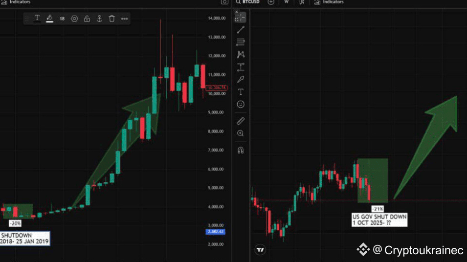 🟠Pada tahun 2025 – cerita yang sama: shutdown lainnya, BTC -21%.