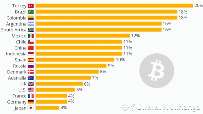 Ecco una ripartizione del valore dei mercati delle criptovalute per paese: