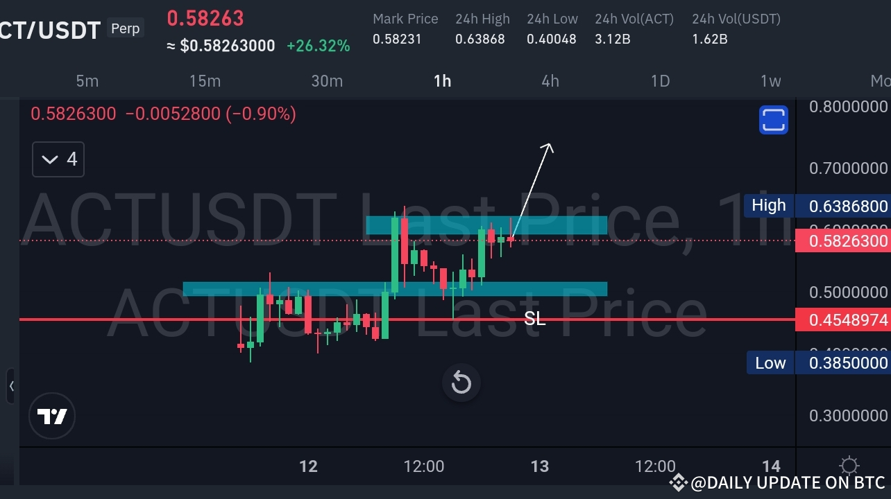 Ciao trader! Oggi stiamo esaminando un'opportunità entusiasmante con ACT/USDT, che ha mostrato una forte performance recentemente, aumentando oltre il 26,32% e attualmente scambiando a $0,5826. Approfondiamo l'analisi e il potenziale setup.