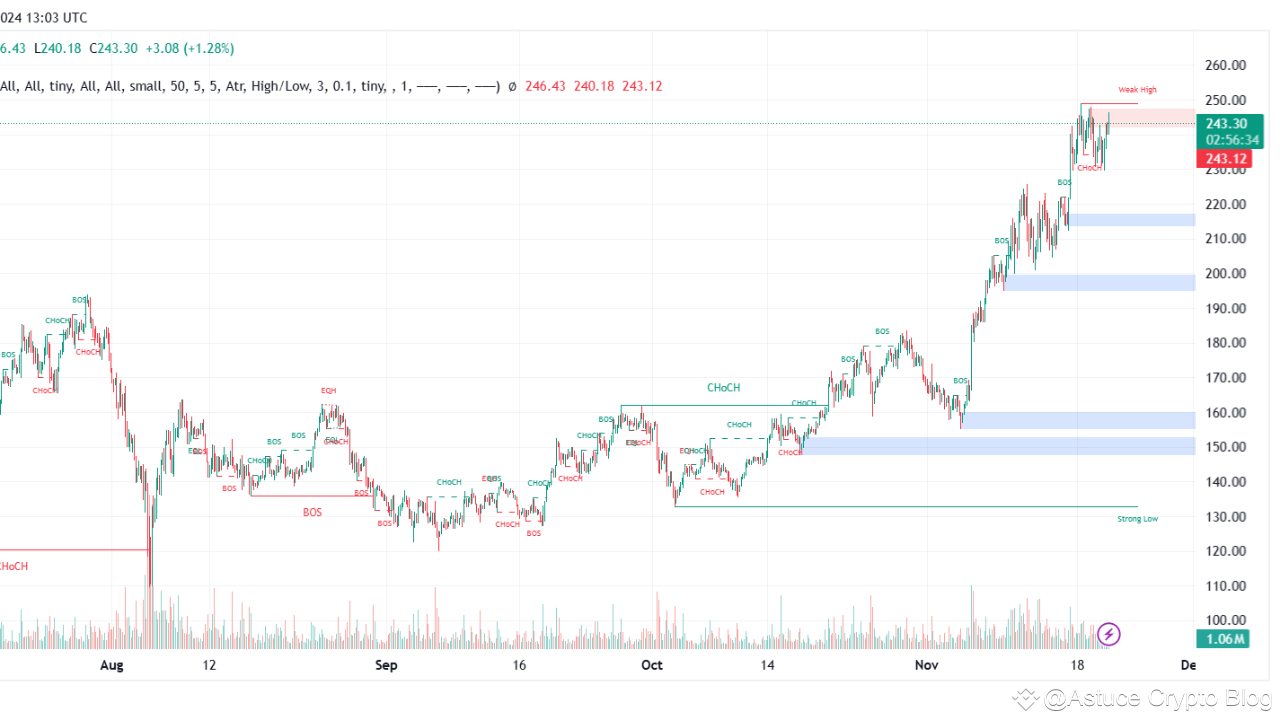 Solana $SOL rimane uno degli asset crittografici più attivi sul mercato, con una volatilità che attira l'attenzione dei trader. Attualmente, il SOL si trova intorno ai 246 dollari, segnando una zona critica di confluenza tra supporto e resistenza.