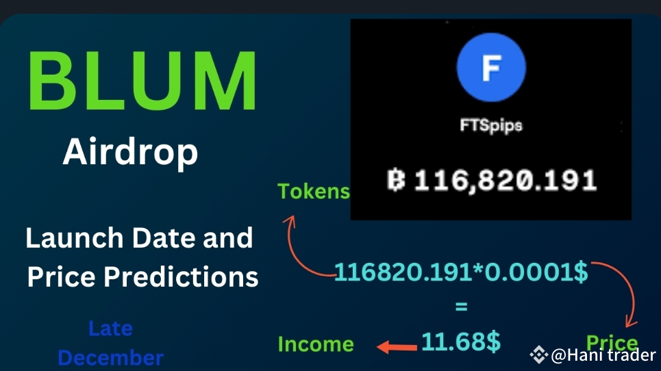 Man mano che il lancio atteso di BLUM si avvicina, previsto per la fine di dicembre, l'airdrop del progetto sta catturando una notevole attenzione all'interno della comunità crypto. Ogni partecipante riceverà 116,820.191 token BLUM, con un prezzo iniziale stimato di $0.0001 per token. Questo suggerisce un reddito potenziale di $11.68 per partecipante.