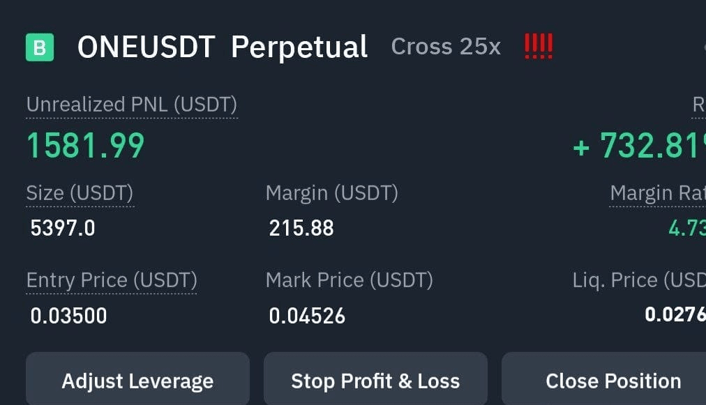 #CryptoTrading #ROI #LeverageTrading #RiskManagement #ONEUSDT #MentalitàDelTrader