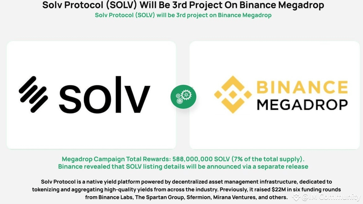 ✅ Ricompensa Megadrop: 588.000.000 SOLV (7% dell'offerta totale TGE, 6,09% dell'offerta totale massima).