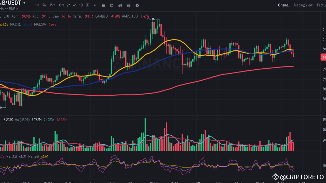 😵Oggi non ho visto molto chiare le possibilità di operare $BNB , ho chiesto al mio fedele amico e mi ha consigliato quanto segue basato sull'azione del prezzo e indicatori chiave. Ecco il dettaglio: