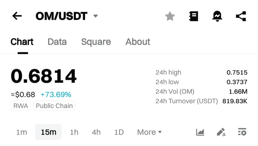 $OM il token è aumentato di oltre il 70% su Bitget, ma è rimasto stabile o è diminuito su Binance e Bybit.