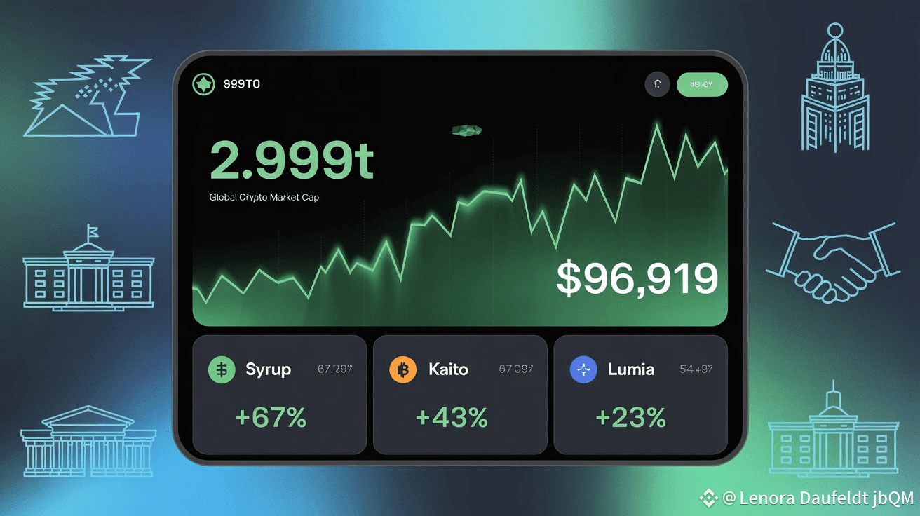 Tra i migliori performer nel mercato, SYRUP è aumentato del 67%, KAITO è saltato del 43%, e $LUMIA