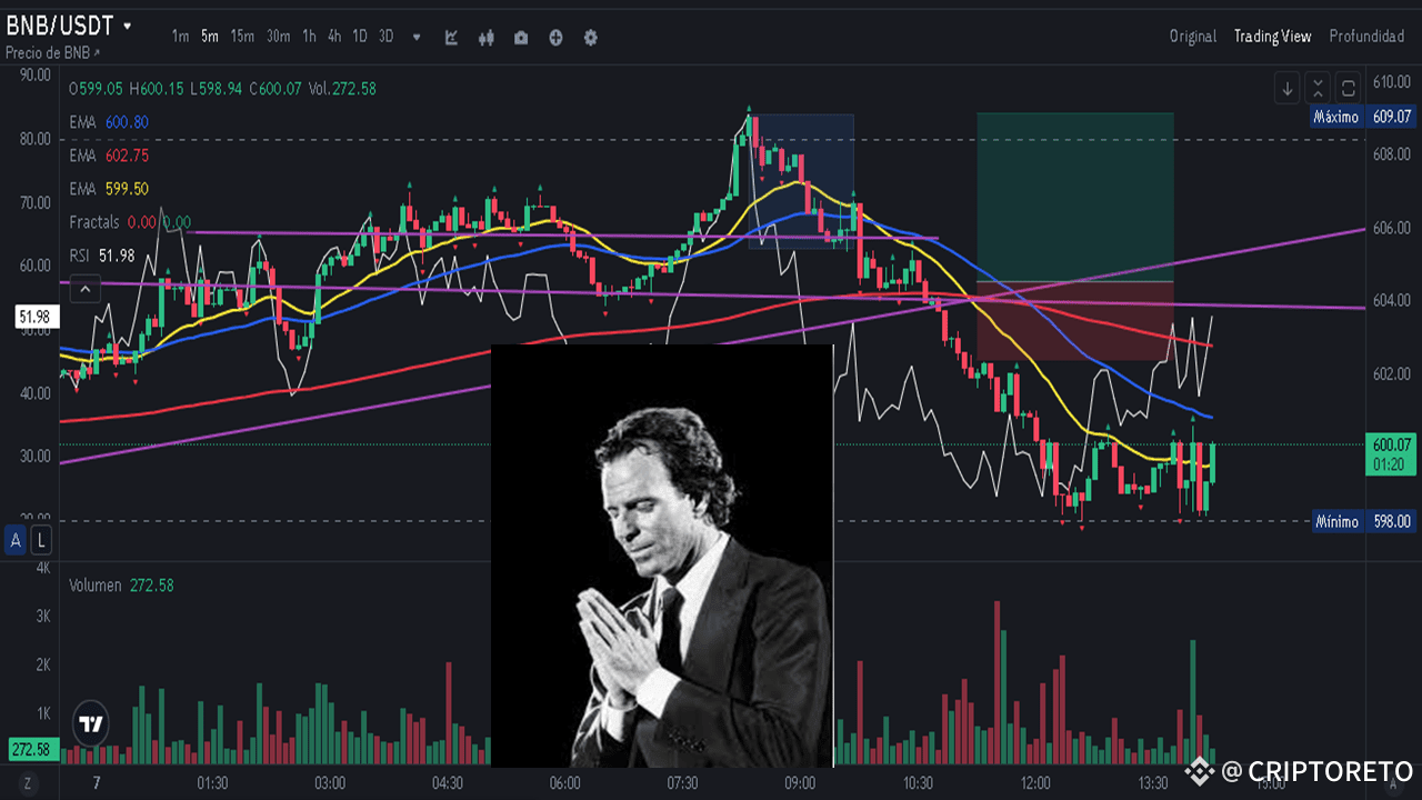 🔥 ho visto un'opportunità in $BNB che, come sapete, mi piace questo sistema cripto. Tuttavia non ho preso la DECISIONE più giusta, penso di essere sulla strada sbagliata. SONO ENTRATO A 604,54