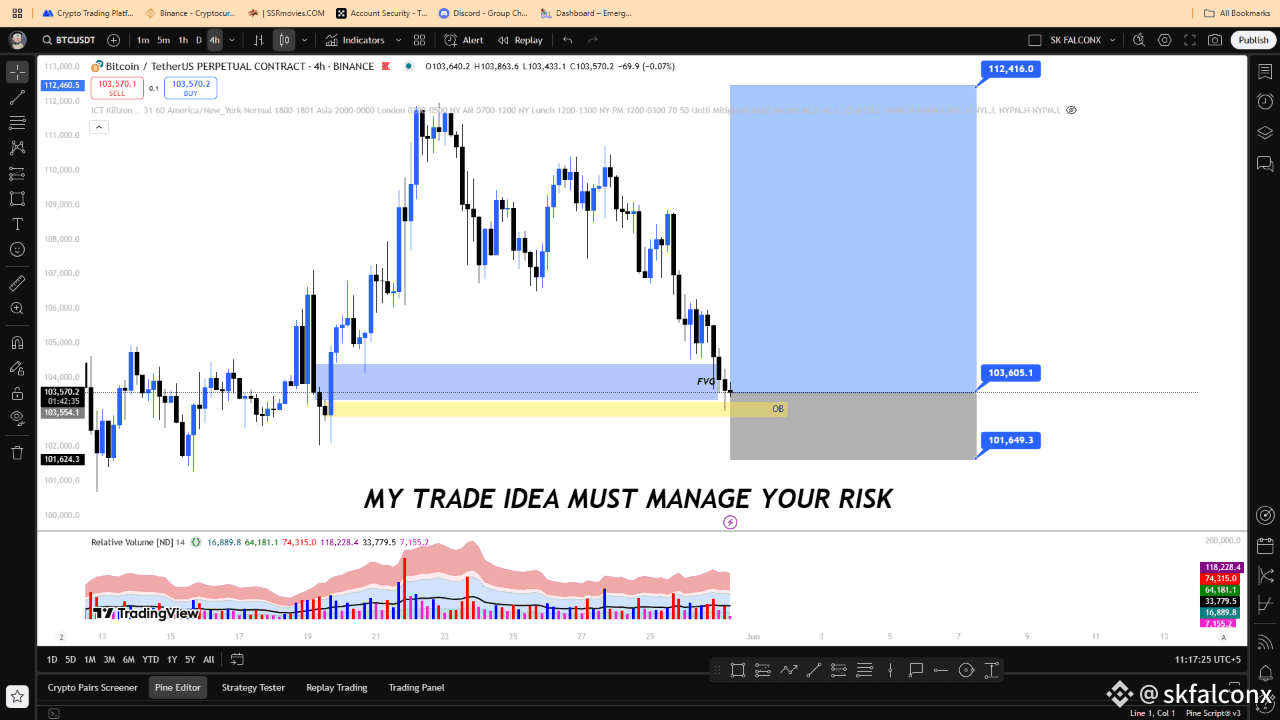 Attualmente seduto nella zona FVG (Fair Value Gap) 4H — area di forte supporto -- & blocco d'ordine 4H