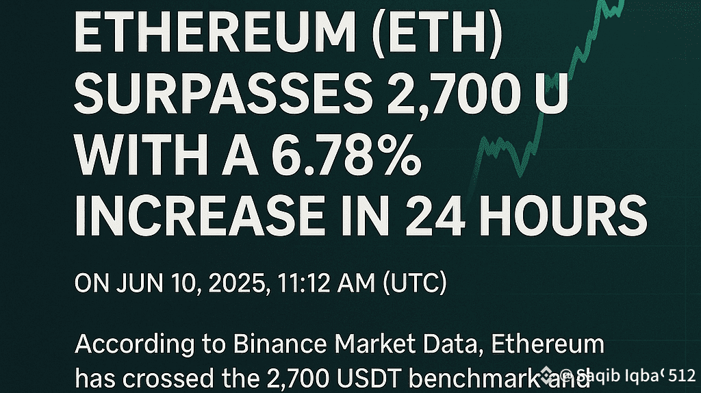 #Ethereum (ETH), la seconda criptovaluta più grande per capitalizzazione di mercato, ha appena superato una barriera psicologica importante — superando i 2.700 #USDT secondo i dati di mercato di #Binance. Secondo le ultime cifre, #ETH sta negoziando a $2.705,18, riflettendo un forte aumento del 6,78% nelle ultime 24 ore.