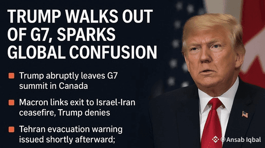 📍 In un colpo di scena drammatico, il presidente $TRUMP ha abbandonato bruscamente il vertice del G7 in Canada, saltando le sessioni finali. Il presidente francese Macron ha affermato che era per i colloqui di cessate il fuoco tra Israele e Iran—ma Trump ha risposto su Truth Social: “Molto più grande di così.”