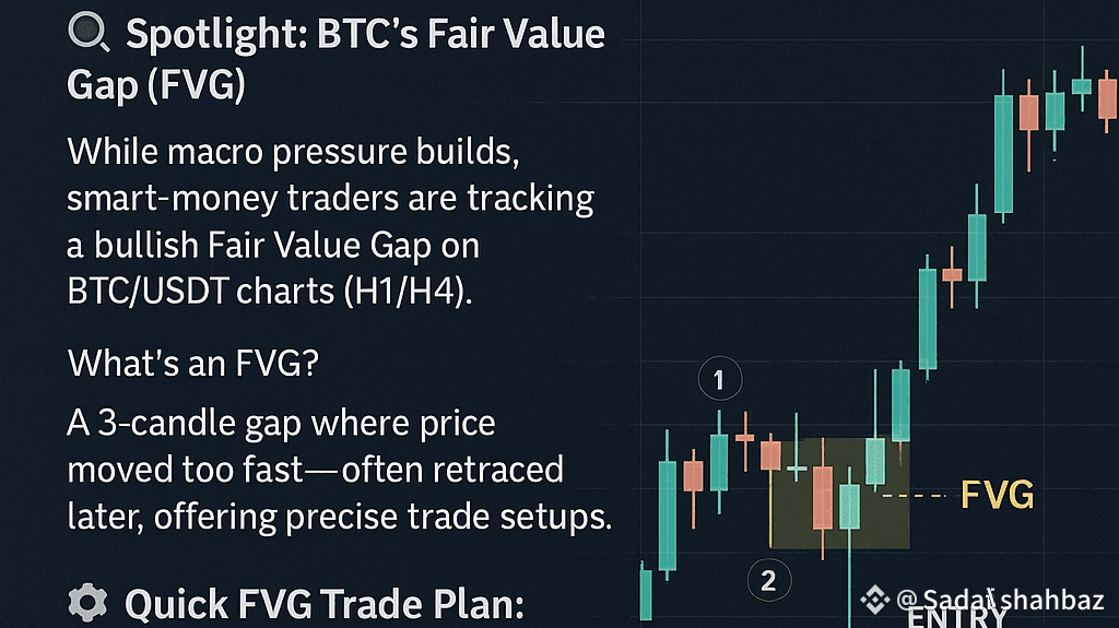 Mentre la pressione macro cresce, i trader di smart money stanno tracciando un FVG rialzista sui grafici BTC/USDT (H1/H4).
