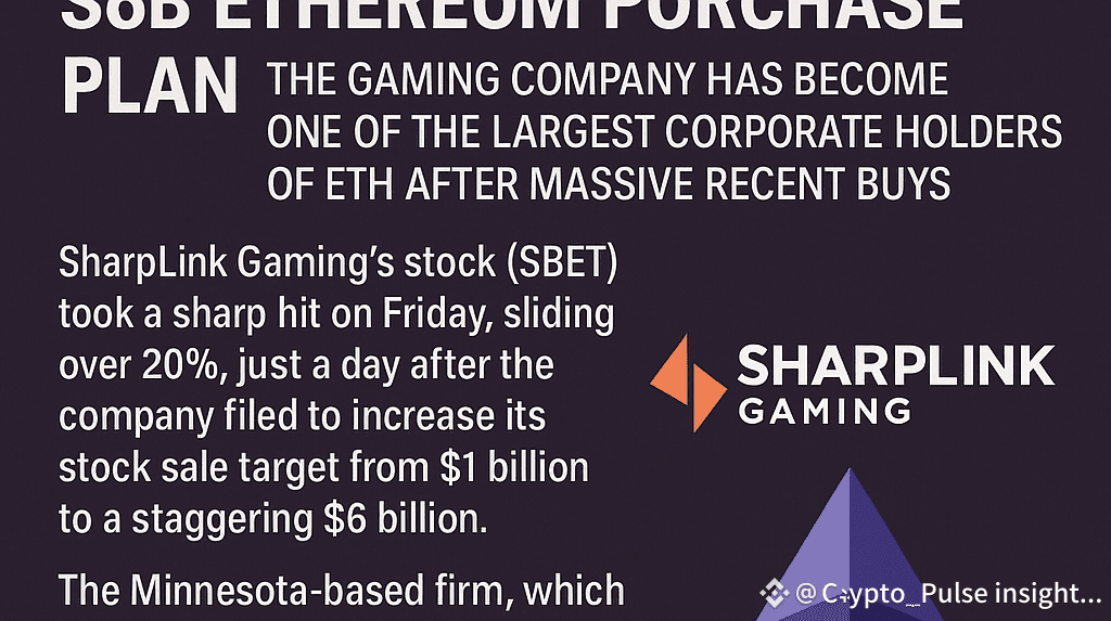 Le azioni di SharpLink Gaming (SBET) hanno subito un duro colpo venerdì, scendendo di oltre il 20%, solo un giorno dopo che la società ha presentato richiesta per aumentare il suo obiettivo di vendita di azioni da 1 miliardo di dollari a un incredibile 6 miliardi di dollari.