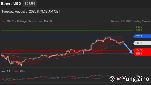 La rottura al rialzo di 3739, chiamerebbe a 3815 e 3861.