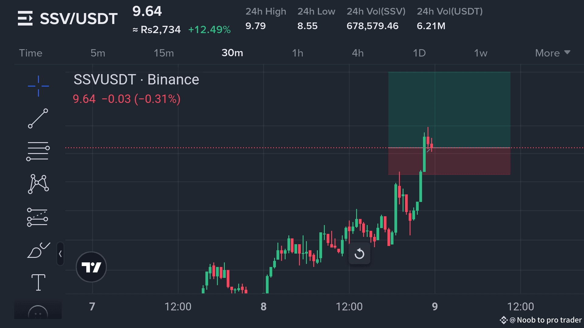 $SSV appena uscita con forte slancio, aumentando oltre il 12% e superando la resistenza di $9.30 con una potente candela rialzista sul grafico a 15 minuti. 📊