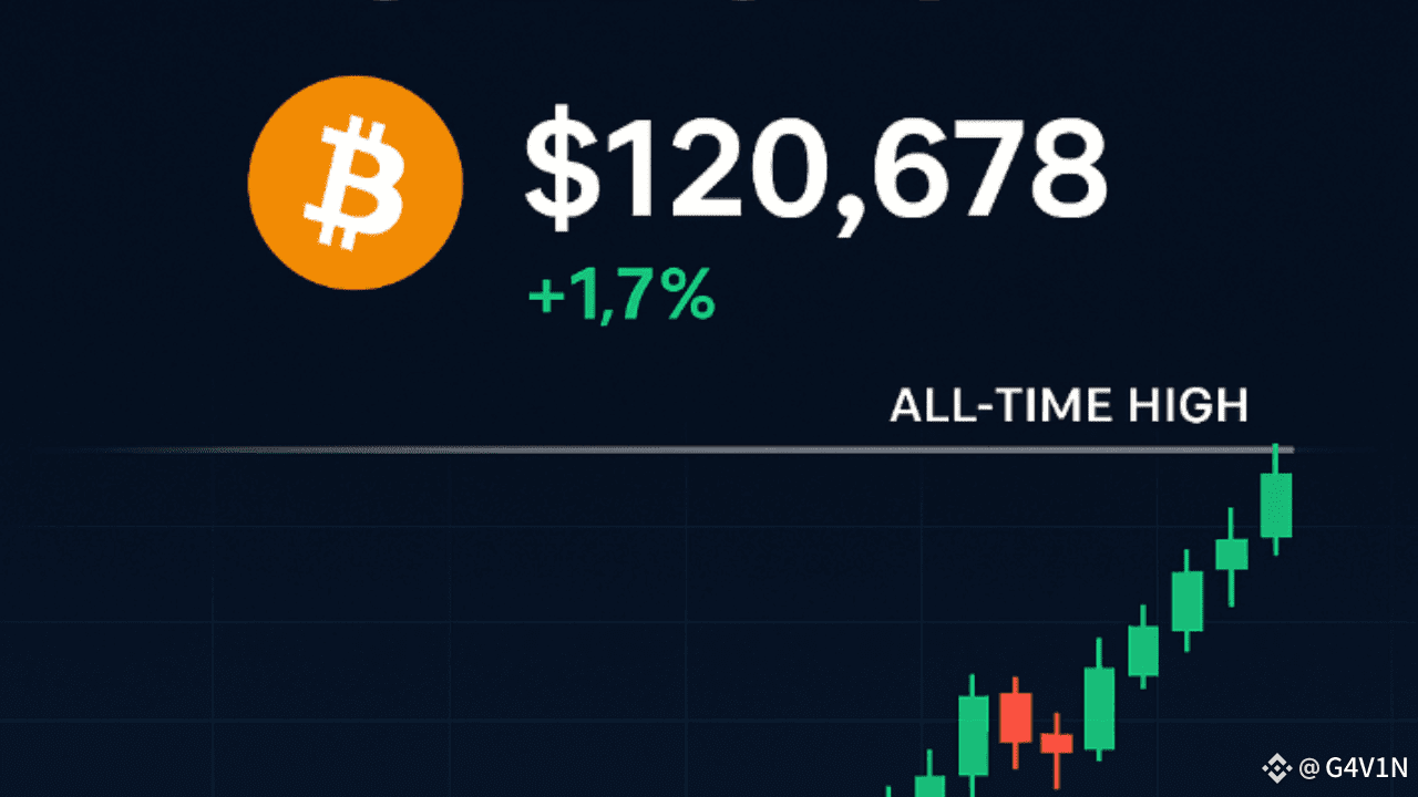 $BTC +~1.7%, scambiando vicino a $120,678, rimbalzando mentre si avvicina al suo massimo storico vicino a $123K
