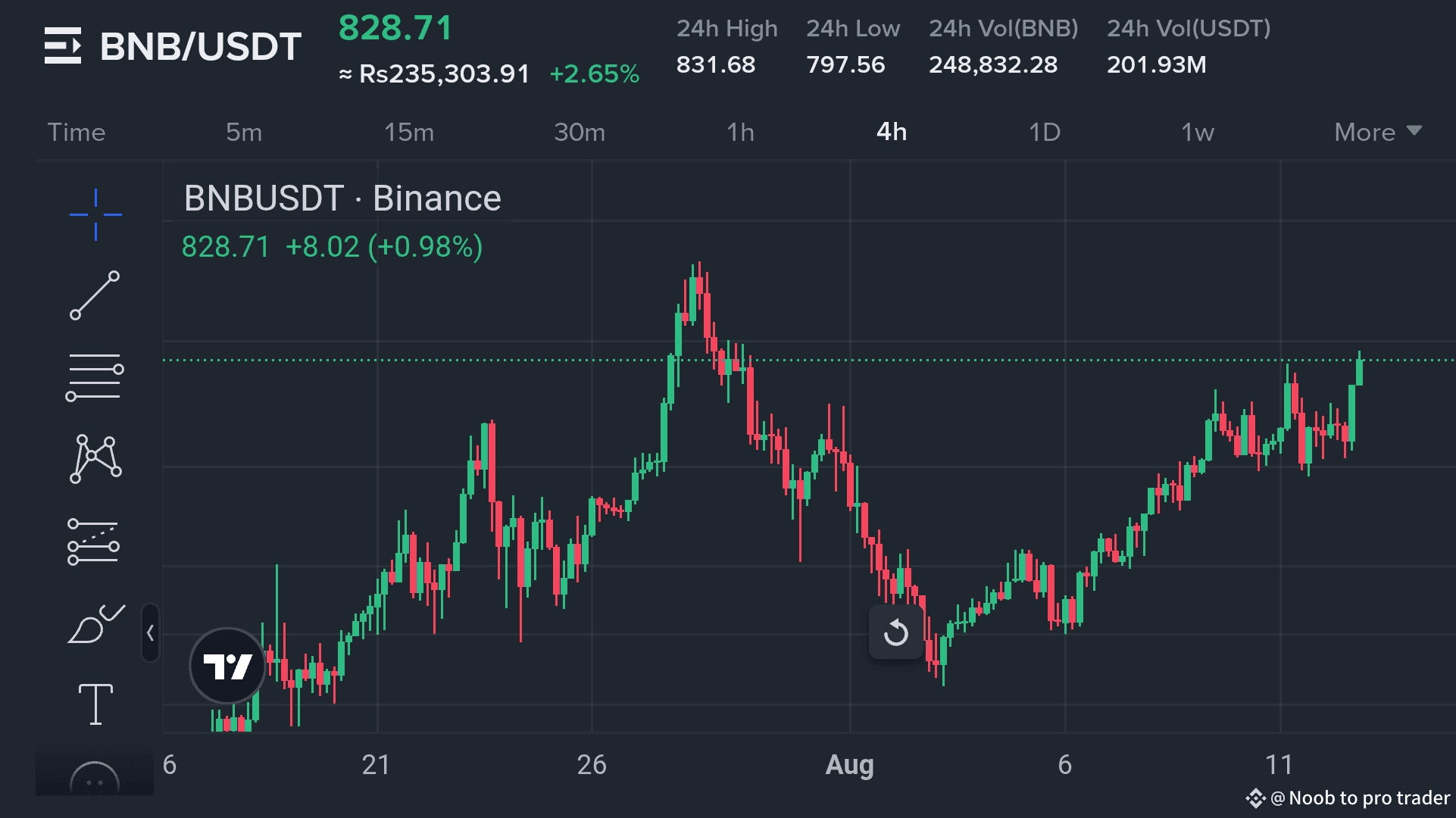 BNB, il token nativo del più grande scambio di criptovalute al mondo, Binance, continua a mostrare forza supportato dalla sua forte utilità e dall'ecosistema in crescita. Superare il traguardo di 830 USDT dimostra una domanda robusta e una crescente fiducia degli investitori. Questo movimento ascendente è incoraggiante sia per i trader a breve termine che cercano opportunità di momentum, sia per i possessori a lungo termine che credono nel futuro di BNB.