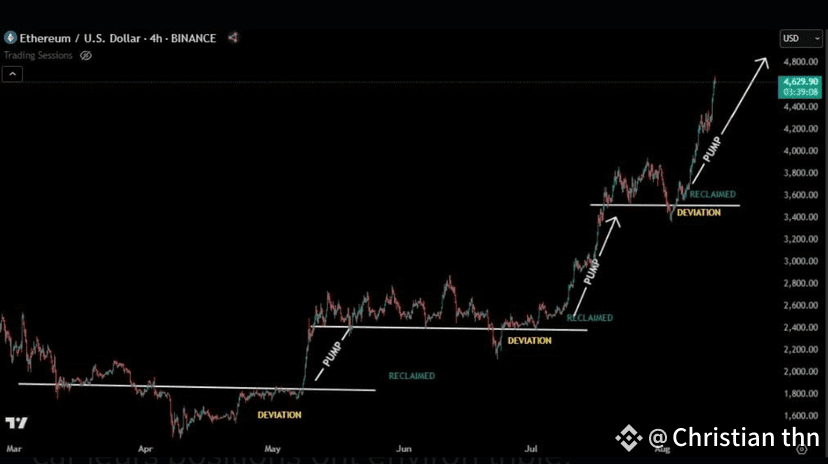 $ETH segue le stesse vibrazioni: breakout, fake-out, reclaim, poi pump. Prossimo obiettivo: 5.000 $. Lo script di inversione dell'intero mercato ETH sta funzionando a pieno ritmo. Ora, gli short vengono liquidati perfettamente, sapete cosa viene dopo. Una sola notizia e questo movimento diventerà esplosivo. In questo mercato, la pazienza ripaga sempre. Coloro che hanno comprato a 1.300-1.400 $ sono felici perché le loro posizioni sono circa triplicate. Coloro che tengono ancora hanno mani di diamante. Andremo più in alto.