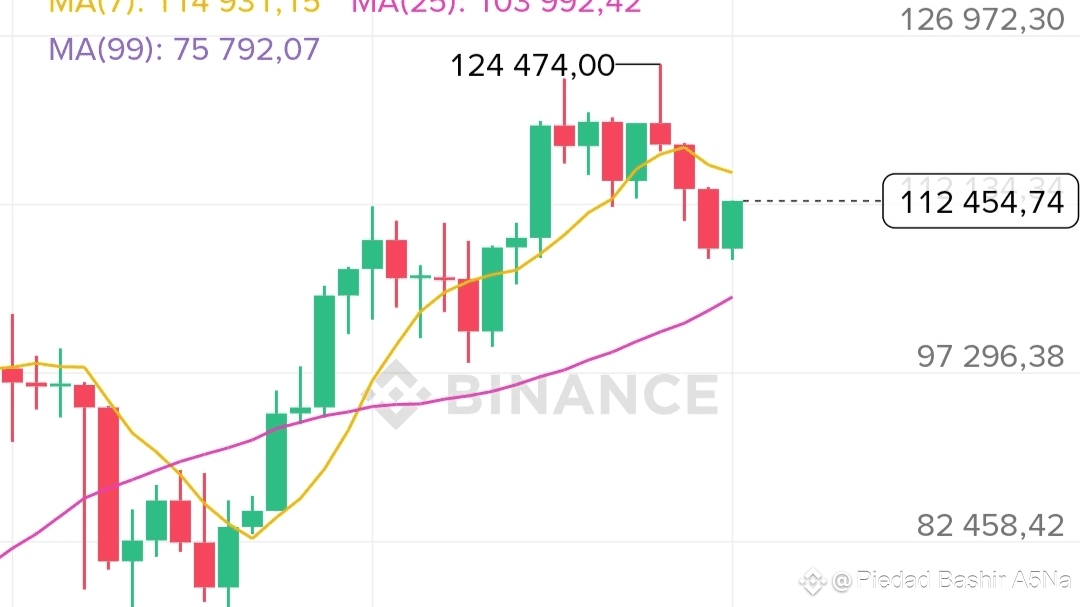 Breve termine: rottura sotto la MA7 (114 931 USDT), il che conferma una correzione in corso.