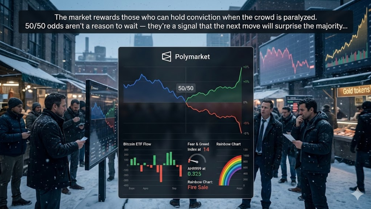 [Sezione 1: Perché 50/50 È In realtà Informativo] Un mercato delle previsioni quasi pari è uno dei segnali più onesti che puoi ottenere. Significa che la folla - dopo aver aggregato tutte le informazioni disponibili - non riesce genuinamente a trovare una narrativa dominante. E quando guardi ai dati grezzi dei flussi ETF, capisci perché...