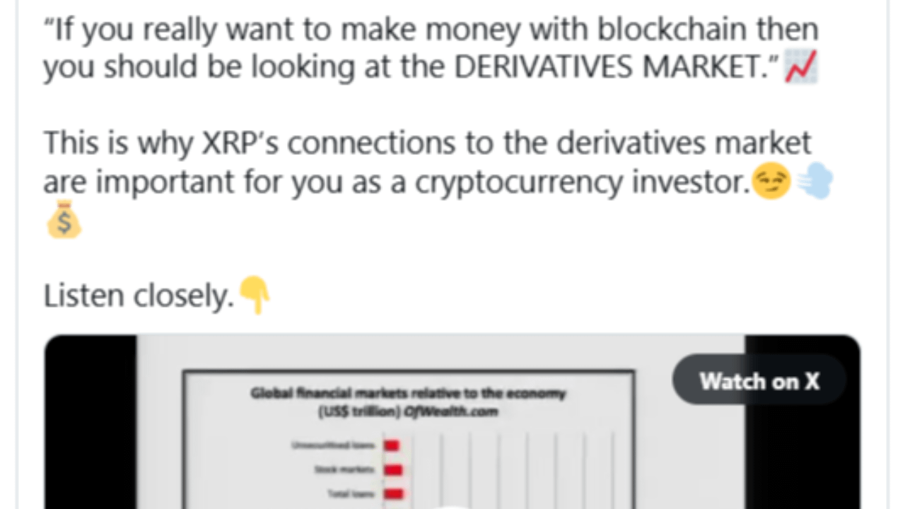 SMQKE also explained why the derivatives sector is relevant in the discussion of XRP and its possible connections to institutional financial systems. The tweet stated, “This is why XRP’s connections to the derivatives market are important for you as a cryptocurrency investor.”