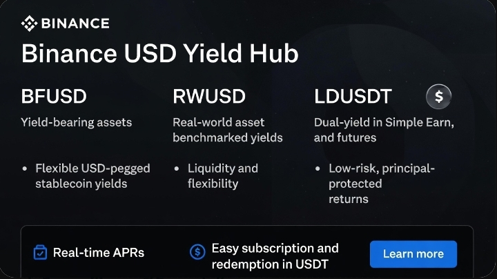 Il hub enfatizza flessibilità, accesso alla liquidità e strategie come il delta-hedging per i trader di futures che vogliono rendimenti senza bloccare completamente il capitale. È ideale per i detentori di stablecoin che cercano rendimenti costanti a basso rischio in mercati sia rialzisti che ribassisti, con APR in tempo reale e facile abbonamento/riscatti in USDT. Disponibilità e tassi esatti variano in base alla regione e alle condizioni di mercato—controlla direttamente nell'app o nel sito di Binance sotto Earn > USD Yield Hub. Pagina ufficiale: https://www.binance.com/en/earn/usd-yield-hub #Binance #YieldHub #StablecoinYield #USCryptotrading #EUcryptotrading