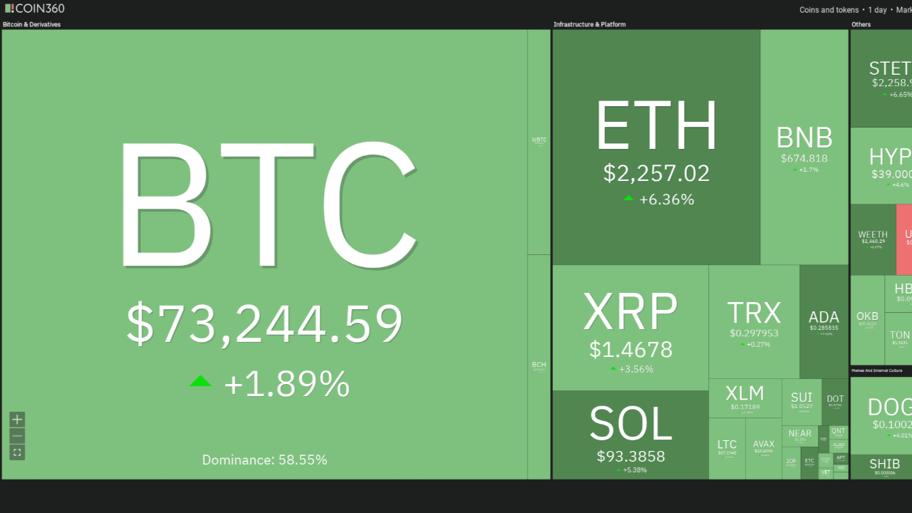 Capitalizzazione totale del mercato cripto (Capitalizzazione di Mercato Globale): Circa $2.51T – $2.58T (aumento di circa 2.3% – 3.7% nelle ultime 24 ore). Il mercato sta recuperando in modo significativo dopo un periodo di volatilità a causa del conflitto in Medio Oriente.