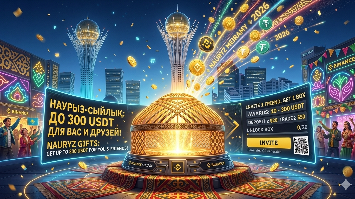 Finché il mercato è volatile, ho preparato per voi un vero regalo. Ho fatto un accordo con Binance (nel nostro anno 2026 sono ufficialmente riconosciuti come "Banca Digitale n. 1" in Kazakistan), e stiamo lanciando una promozione referral "Regali per Nauryz"!