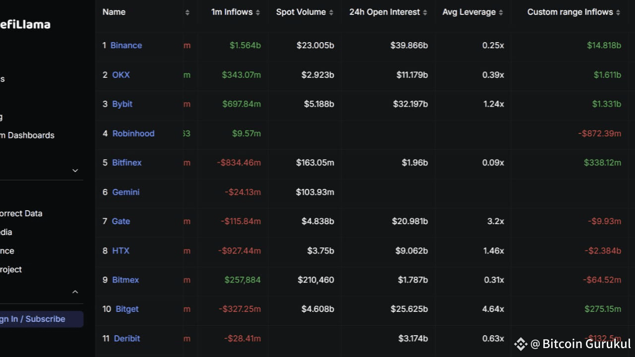 Quindi ecco la realtà: Binance ha appena registrato $14.8 miliardi in afflussi netti durante il Q3 2025. Ora so che è un numero enorme, ma aspetta finché non senti il resto. Le prossime dieci maggiori borse COMBINATE hanno appena racimolato $94 milioni. E ascolta questo – la maggior parte di loro aveva effettivamente soldi che fluivano FUORI, non dentro.