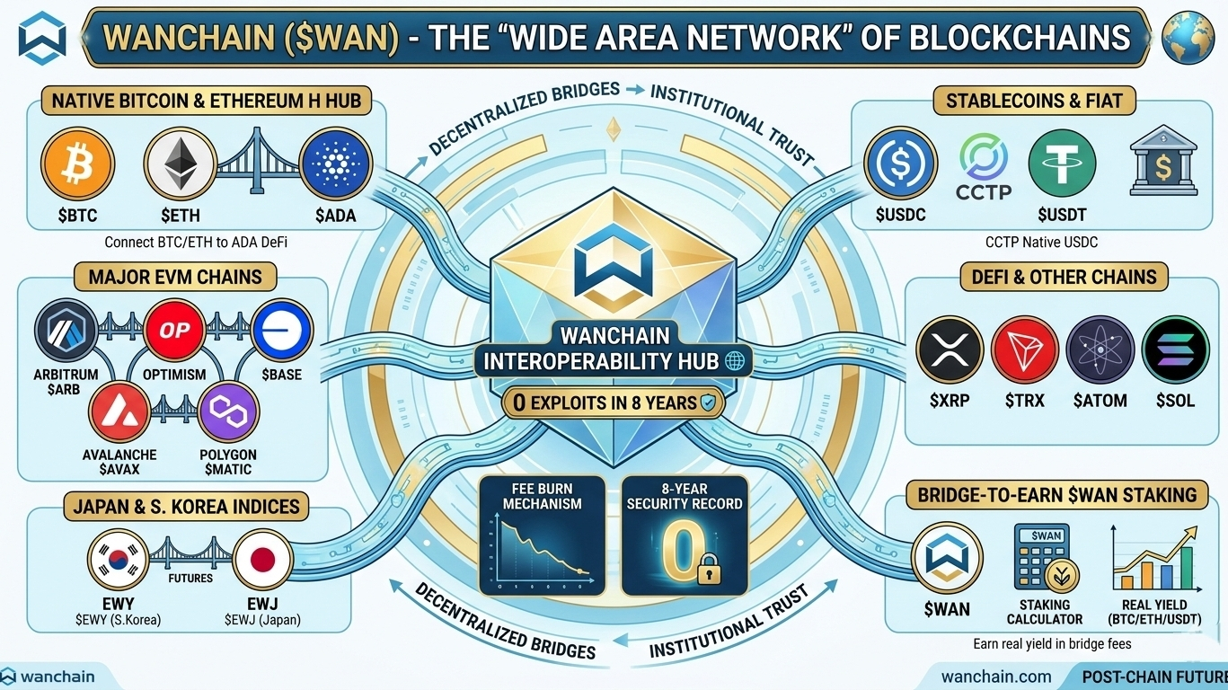 Wanchain non collega solo le catene EVM. Collega Bitcoin, XRP, Cardano e Tron in un'unica rete unificata. Recentemente, la sua integrazione con il CCTP di Circle l'ha resa il percorso preferito per i flussi istituzionali di USDC. 🏦