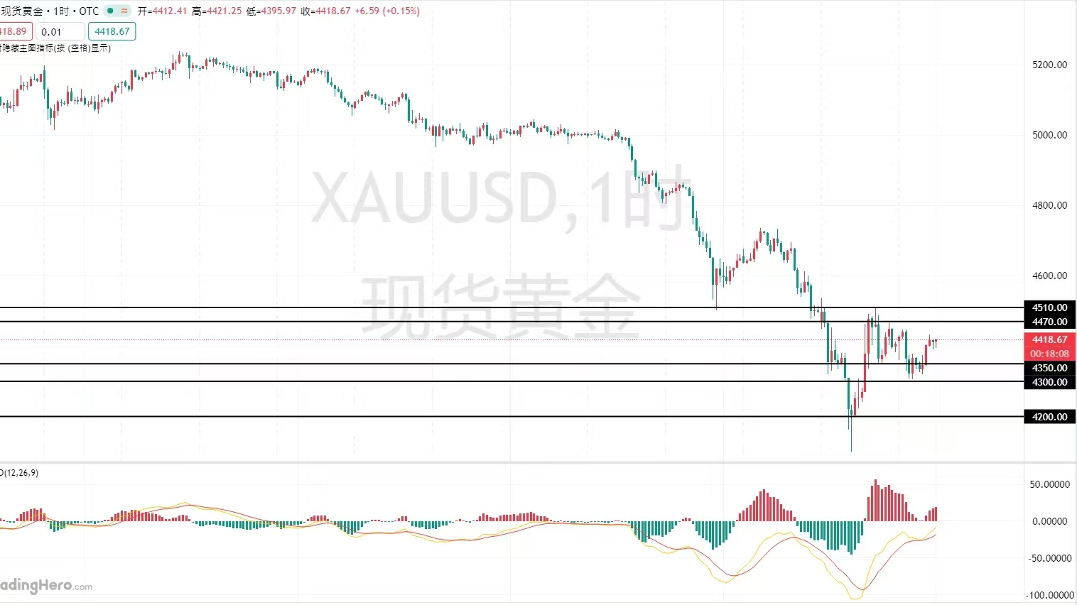 Guardando l'andamento orario, oggi l'oro si sta principalmente muovendo in oscillazione e consolidamento, da un lato per digerire il ribasso continuo precedente, dall'altro il mercato è ancora in attesa di verificare il discorso di Trump; è molto probabile che questa settimana si mantenga un'ampia oscillazione. In alto, si guarda principalmente alla resistenza intorno a 4500, mentre in basso si guarda prima al supporto a 4300; se viene rotto, si guarda intorno a 4200. Complessivamente, oggi la strategia suggerita da Lao Yu per l'oro è di puntare principalmente sul rimbalzo per andare long, supportando anche il short; nella parte alta, si guarda principalmente alla resistenza a breve termine di 4470-4510, mentre nella parte bassa si guarda al supporto a breve termine di 4350-4300.