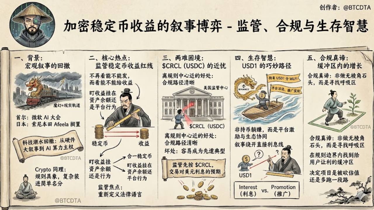Recentemente, i grandi investitori dovrebbero prestare attenzione a un altro argomento caldo: non quale criptovaluta stia rimbalzando, né chi sta subendo un'esplosione di liquidazione, ma come le regole delle stablecoin americane iniziano a passare dalla capacità di emettere verso come possono fornire profitti e chi sarà a farli. La regolamentazione non si occuperà più solo delle stablecoin stesse, ma anche di quella linea rossa tra stablecoin e profitti e come sarà tracciata.