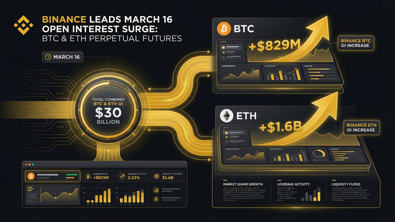 Il 16 marzo, l'interesse aperto combinato nei futures perpetui di Bitcoin ed Ethereum è salito a circa $30 miliardi, il livello più alto dalla fine di gennaio. Questo da solo segnala una partecipazione più forte nel mercato. Ma il dettaglio più importante è questo: Binance ha guidato l'impennata.