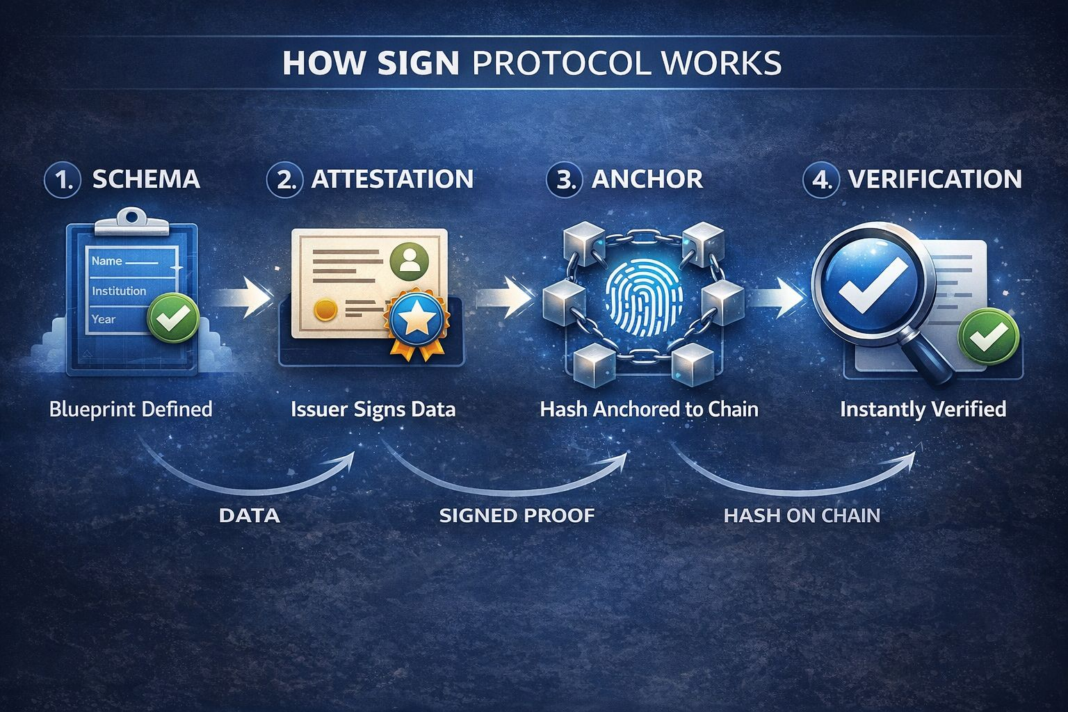 When we look at how SIGN works under the hood, it boils down to a seamless four-step lifecycle: