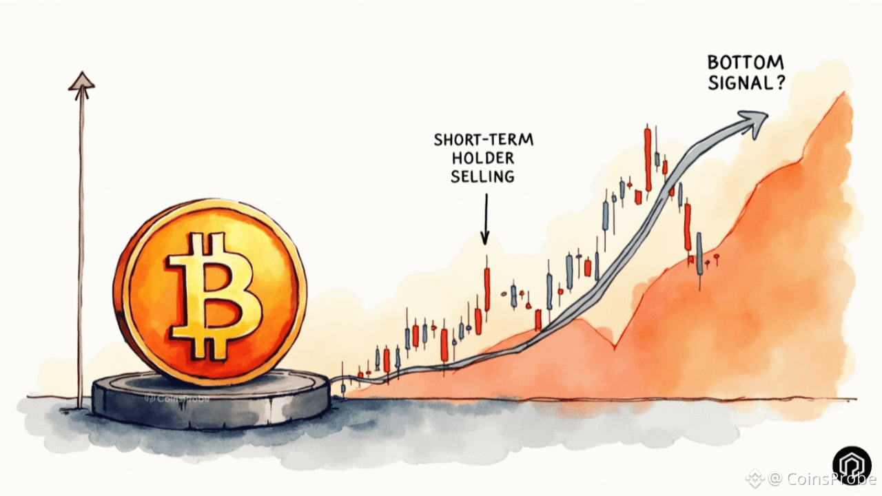 Come abbiamo trattato nella nostra analisi sull'accumulazione delle balene di Bitcoin, i portafogli grandi hanno accumulato silenziosamente 61.568 BTC nell'ultimo mese anche se il prezzo rimane sotto pressione — una divergenza che aggiunge ulteriore contesto ai segnali di fondo on-chain ora emergenti dai dati dei detentori a breve termine.