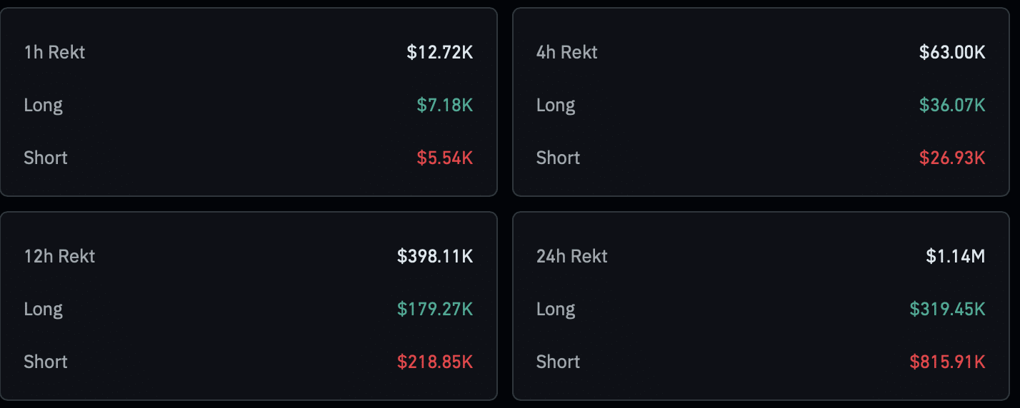 I dati di liquidazione raccontano una storia simile. I trader short hanno subito perdite maggiori rispetto ai trader long, dimostrando che le posizioni ribassiste sono state schiacciate mentre il prezzo si muoveva verso l'alto. Le cifre recenti mostrano circa 817.000 dollari in liquidazioni short rispetto a circa 319.000 dollari in liquidazioni long. Quell'impatto indica un mercato in cui i trader long hanno ancora il controllo e stanno forzando le posizioni ribassiste più deboli fuori.