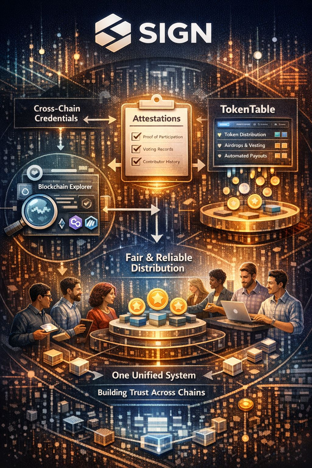 Connecting credential verification with token distribution seemed like a convenience at first. Two tools packaged together. But the longer I thought about it the more I understood they are fundamentally linked. You cannot distribute value accurately if you cannot verify claims accurately. A fair airdrop requires knowing who actually participated. A proper vesting schedule requires knowing who actually contributed. The verification layer and the distribution layer are not separate problems. They are two sides of the same problem and solving them in isolation is why everything keeps feeling duct-taped together.