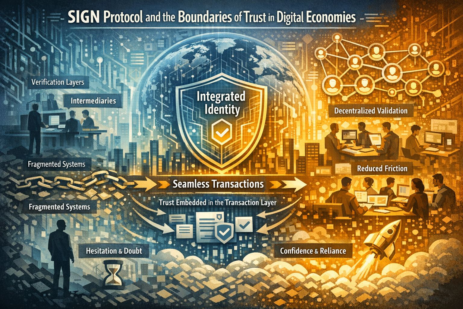 What shifted my perspective wasn’t a feature announcement, but repeated interaction with systems where identity wasn’t presented as a step, but as a condition. In SIGN Protocol, when identity is integrated directly into the transaction layer, it doesn’t ask for attentionit shapes outcomes quietly. I don’t find myself verifying credentials mid-flow, yet the system behaves as if certain checks have already been resolved. The effect is subtle but persistent: fewer interruptions, fewer external confirmations, and a noticeable reduction in the need to second-guess whether something actually happened. Identity, in this context, stops being a checkpoint and starts acting like a boundary around uncertainty.