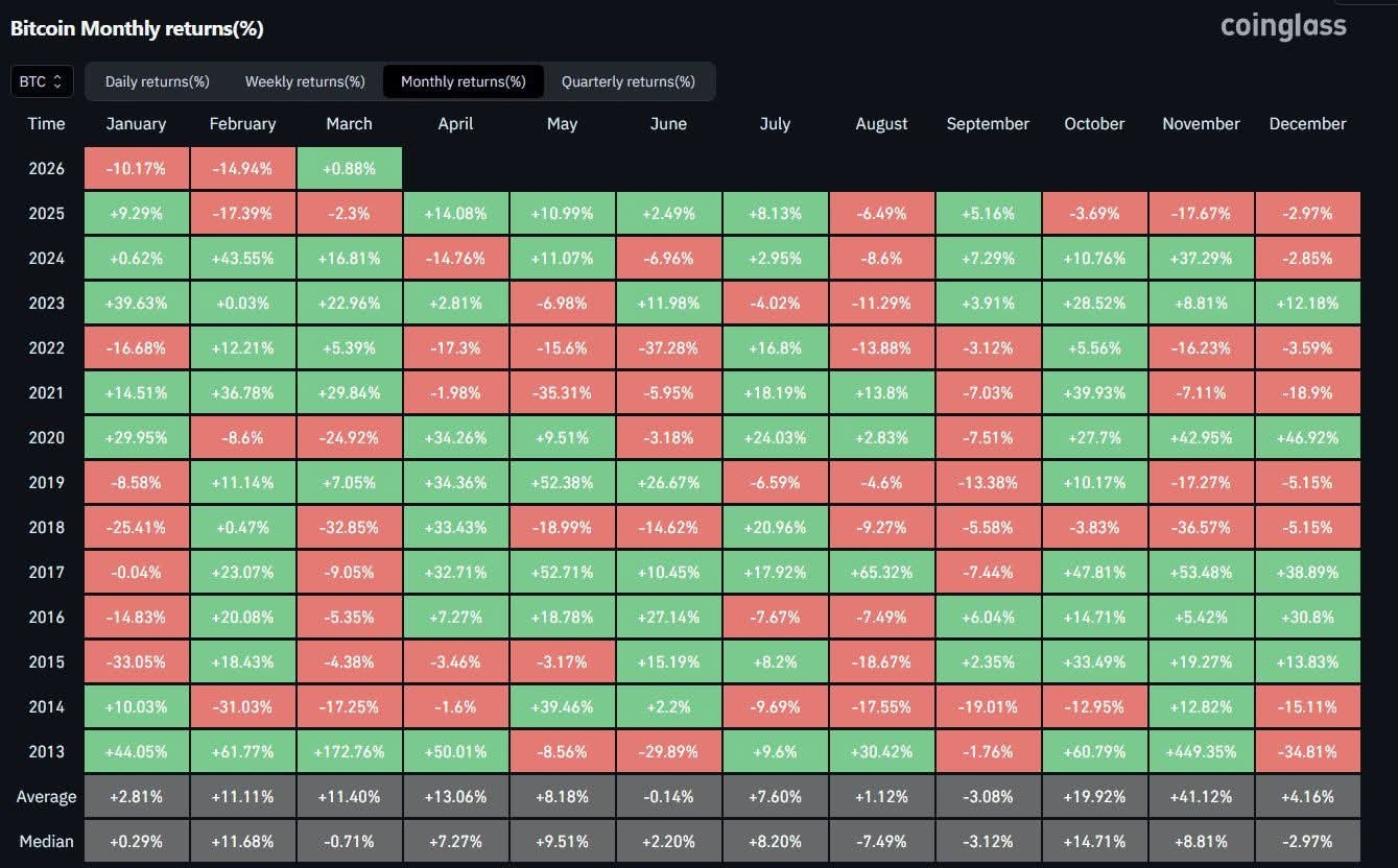 Marzo è attualmente intorno a +0.88%.