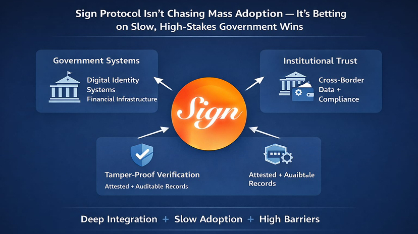 Most crypto projects I see are chasing the same thing: speed, attention, and mass adoption. More users, more wallets, more activity. Everything is optimized to grow fast and look big. But the more I study Sign Protocol, the more it feels like it’s intentionally ignoring that playbook. It’s not trying to win quickly, and it’s definitely not trying to look impressive in the short term. Instead, it seems to be positioning itself around something much harder — becoming part of systems where trust actually matters.