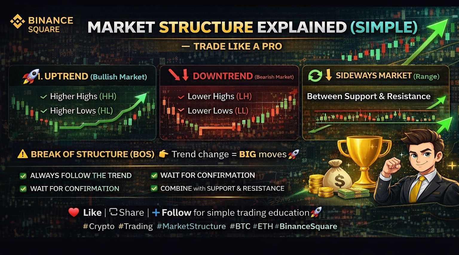 📈 Market Structure Explained (Simple) — Trade Like a Pro