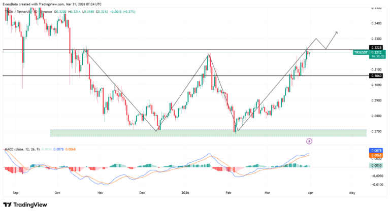 En la parte técnica, la cosa se pone interesante. Hemos visto cómo TRX viene marcando mínimos cada vez más altos, apoyándose fuerte en la zona de los 0,27 dólares . Es como si estuviera subiendo una escalera mecánica: cada vez que intenta bajar un escalón, los compradores saltan de una vez a defender el precio. 📈 El MACD (ese indicador que nos dice hacia dónde va el impulso) ya cruzó al lado positivo, confirmando que los toros tienen el control por ahora.