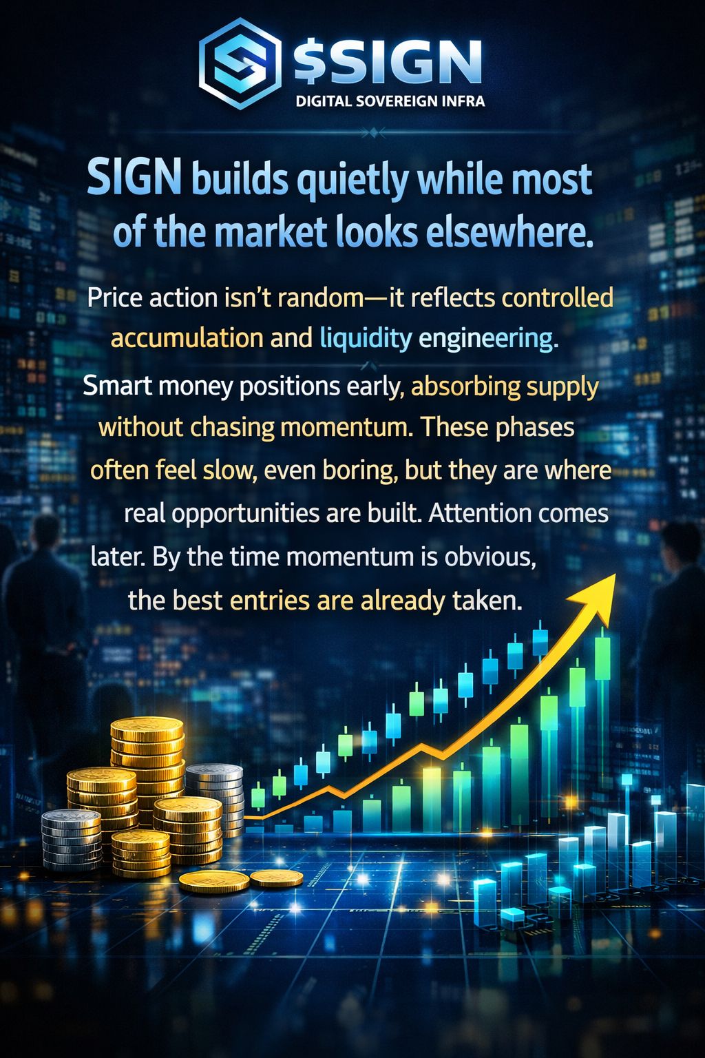 SIGN builds quietly while most of the market looks elsewhere. Price action isn’t random—it reflects controlled accumulation and liquidity engineering. Smart money positions early, absorbing supply without chasing momentum. These phases often feel slow, even boring, but they are where real opportunities are built. Attention comes later. By the time momentum is obvious, the best entries are already taken.