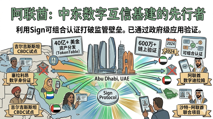 阿联酋不是光打电话。它正在干一件更实在的事——跟Sign合作,把阿布扎比当成整个中东的试验田,搞政府区块链基础设施、数字身份、资产分发系统。阿联酋的数字迪拉姆计划年底前推出,沙特和阿联酋还在搞CBDC联合试点。这些不是说说,是已经在地面跑的东西。