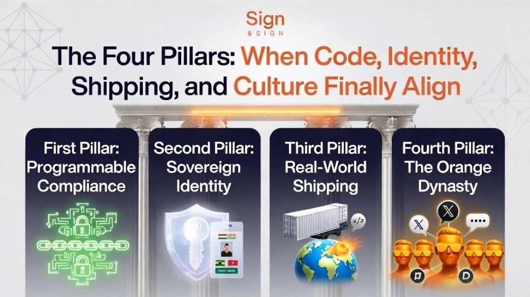 I have been sitting with everything I wrote about Sign Protocol for a while now. The built‑in rules essay covered the compliance side, how cooldowns and buyer checks get locked straight into the smart contract. The hackathon piece talked about shipping, the Bhutan example where thirteen apps landed on a live national identity system. Then I tried to pull it together into three pillars: programmable compliance, sovereign identity, real‑world shipping. That framework held up, but something kept nagging at me. There was a fourth piece I had not named yet, the one that makes the other three feel alive instead of just technically correct.